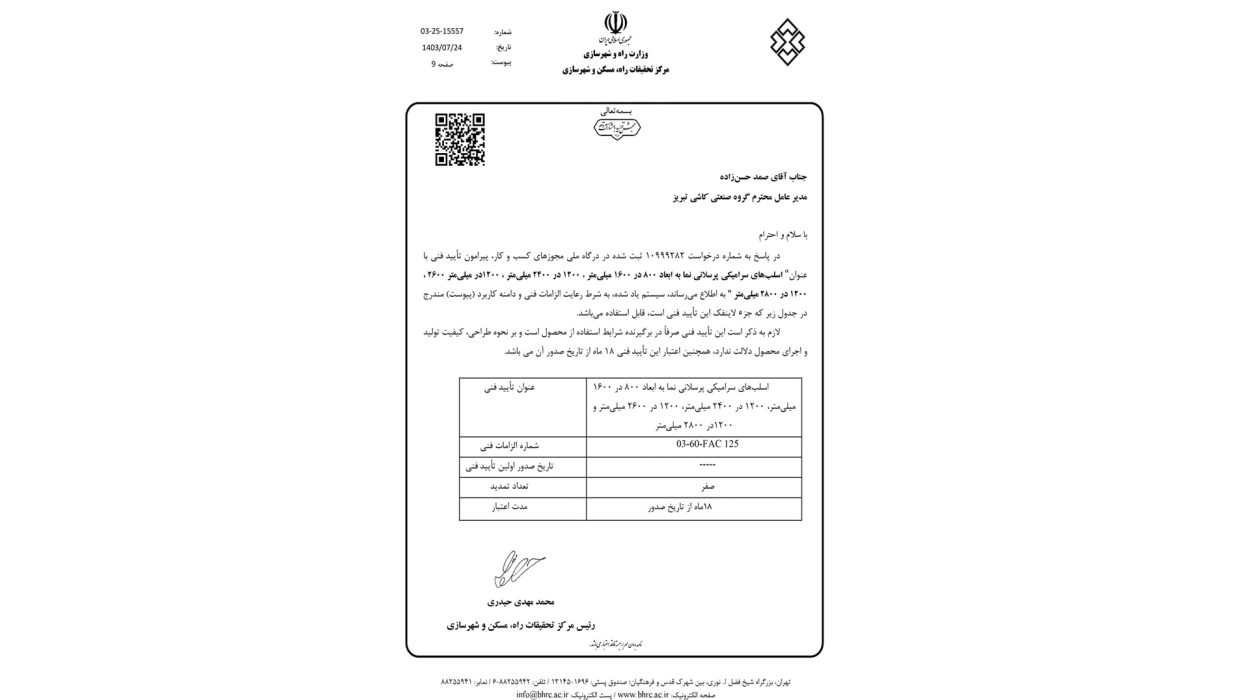 تاییده-نما اخذ تائیدیه فنی برای اولین بار در ایران توسط گروه صنعتی کاشی تبریز